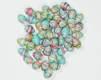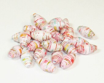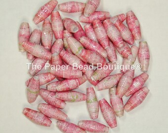 Paper Beads, Loose Handmade Supplies Barrel Pink Flamingos with Cherry Shimmer