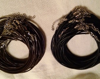 2 Leather Necklaces, Silver Plated Lobster Clasp, 18 1/2" Plus Extender, Choice of Black or Brown