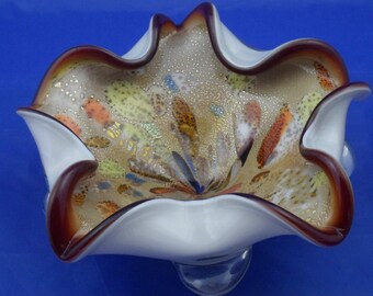 RESERVED Soraya Murano glass bowl #1 - 1950s bimorphic bowl in cased glass with aventurine and tutti frutti. Large (9.5" / 24cm)