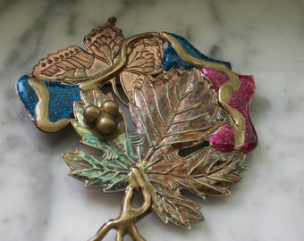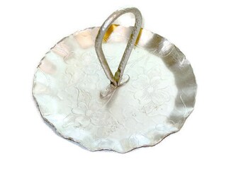 Vintage Hammered Aluminum Flowered carrier with scalloped edge offered by Shersvintagefinds server, household decor, kitchen