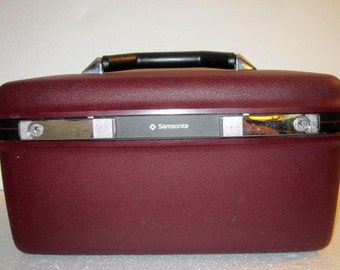 Vintage Luggage, Samsonite Make up Case, train case, burgundy, has keys, mirror, travel shersvintagefinds, FREE SHIPPING