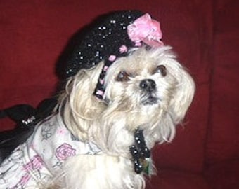 FRENCH BERET dog pet hat - 2 to 20 lb dog or cat - NEED measurement-many colors avail
