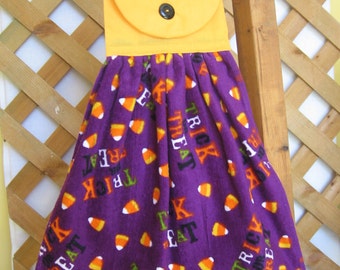 Halloween Pumpkin Kitchen Tea Towel LAST ONES Hanging Kitchen Tea Towel with Halloween Pumpkins SnowNoseCrafts