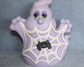 Handpainted Glass Happy Halloween Ornament of a Black Widow Spider on her Web