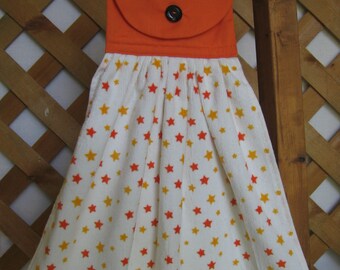 Stars Hanging Dish Towel, Kitchen Tea Towel, Halloween Hanging Hand Towel, Orange Yellow Stars, Kitchen Towels SnowNoseCrafts