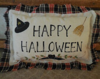 Primitive Halloween Themed Fabric Pillow Tuck Fright Night Hauntings Holiday Decor