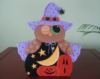 Owl shelf sitter, halloween owl shelf sitter, shelf sitter, handpainted wood, gift for her, hostess gift, halloween shelf sitter