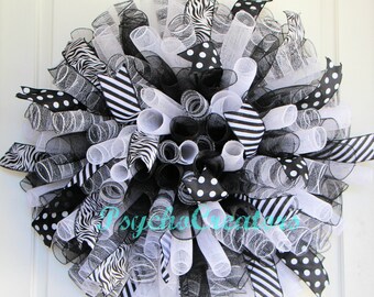 Black White Deco Mesh Wreath - Curly Spiral Wreath – Halloween Wreath - Sports Team Wreath – Chicago White Sox