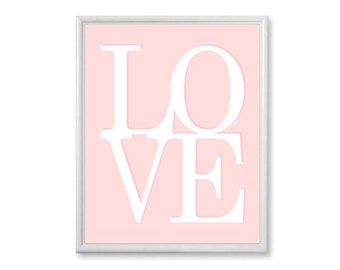 LOVE Word Art Print, 5x7 or 8x10, Pastel Wall Art, Baby Girl Nursery Decor, Classic Style Artwork