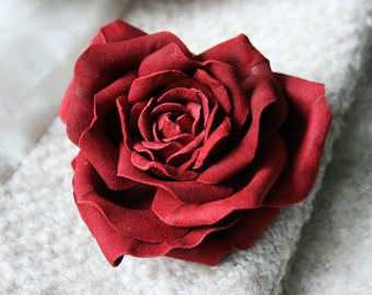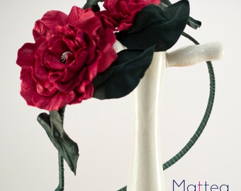 Red Leather Rose Flower Headband with Pearls Handmade Design Headband Exclusive Accessory Unique Bridal Anniversary Head Piece Bridesmaids