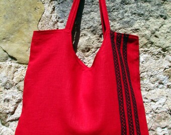 SALE- 50% Linen Bag- Really Red- For All Purposes, carry all tote, diaper bag, market bag, extra large tote, vegan bag,