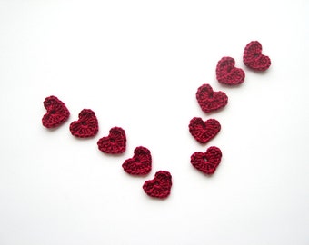 Crochet Heart Appliques, Red Wine Red, Set of 10, Valentines Day Heart Love Motif, Scrapbooking, Party Decorations, Bloody Love Heart