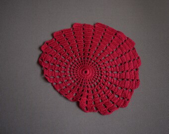 valentines day Crochet doily,lace doilie, table decoration, crocheted place mat,seashell, doily tablecloth,table runner, napkin, cotton, red