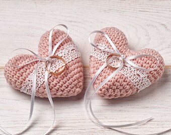 Wedding Ring Pillow Ring Bearer Pillow Engagement Ring Holder Heart Bearer Crochet Pillow for Bride and Groom Cake Topper