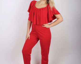 Red Women Overalls One Piece Bodysuit Spandex Workout Sport Wear Track and Field Athletics Vintage Halloween Costume