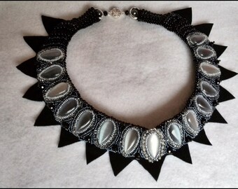 Statement necklace / black and gray bib necklace / mixed stones and beds necklace
