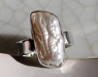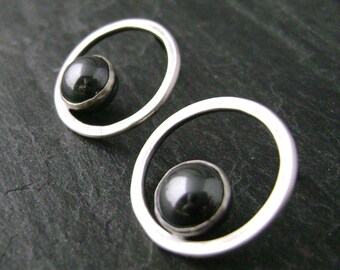 Silver-Grey Shiny Hematite Sterling Ring, Simple Lines, Unique, Unisex, Size 7.25
