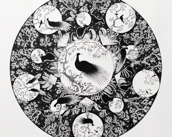 Nature Illustration Framed and ink framed illustration and black and white illustration and ink bird illustration and bird pen drawing ink