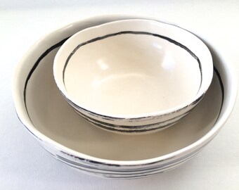 Ceramic bowl in white with black matte glaze.Serving bowls.Dipping bowl,cereal bowl,dessert bowl,housewarming gift,Wedding gift,for hostess