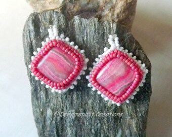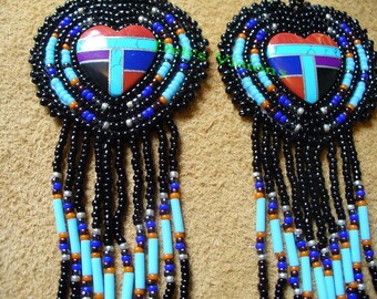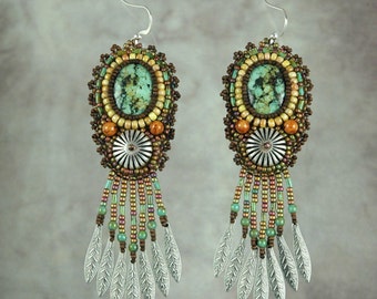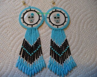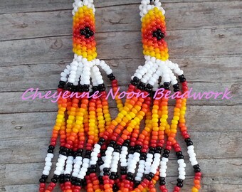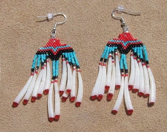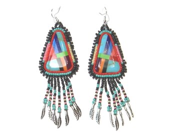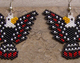 Native American Inspired Beaded Eagle Earrings with DETALIUM SHELL " LONG "