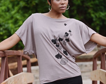 Aztec Electric blue Tunic top,digital print tee, ethnic style, shirt tribal printed design, short batwing sleeves by Texturable