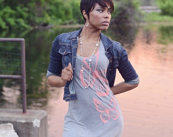 SALE - s, xl, - Flutterby Dress in Light Gray, butterfly dress, butterfly print, maxi dresses for women, boho maxi dresses, on sale,