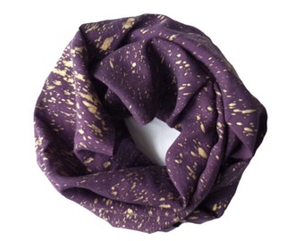 Purple Infinity Silk Scarf in the Gold Speckle Pattern. Hand Crafted. Modern Ink Print. Eco Figure Eight Scarf. Simple, Sleek, Elegant Cowl.