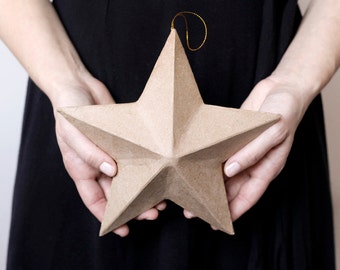 Mache Star Ornament - Large Unfinished 3D Hollow Paper Craft Form, 7 1/2 Inch - U-Decorate