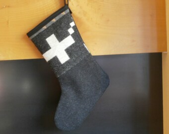Cross Christmas stocking, Pendleton wool southwest pattern, Style # BLK 2, black and cream