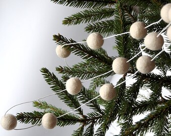 Christmas garland, white garland, rustic christmas, primitive christmas, felt ball garland, wool ball garland, holiday garland, felt balls