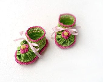 Baby Crochet Sandals, baby shower, Hot Pink and green baby girl sandals barefoot