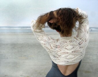 Off White Hand Knitted Shrug Bolero Stole Capelet Poncho Wedding Bridal white cardigan white wrap