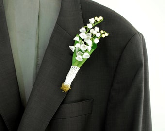 lily of the valley boutonniere, spring weddings accessories, grooms boutonniere, bridal brooch, May wedding, white green flowers, nature