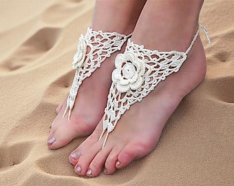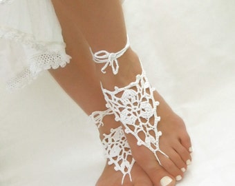 White barefoot sandals Crochet beach wedding sandles Bridal anklets Bare foot jewelry Soleless shoes Footless sandles