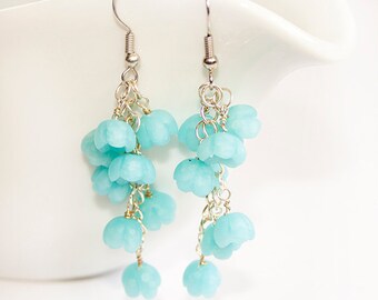 Tiffany blue cluster earrings - Bridal blue - wedding earrings - Forget-me-not cluster - Israel jewelry - polymer clay flowers