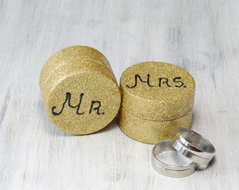 Gold Glitter Wedding Ring Boxes, Gatsby Wedding Ring Bearer Boxes, Ring Bearer Pillow Aternative, Mr. and Mrs., set of 2