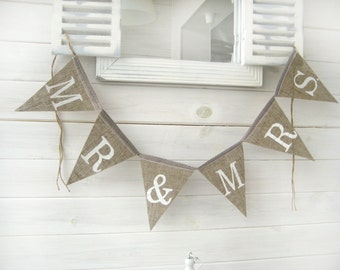 MR & MRS burlap banner - Wedding Banner - Rustic Wedding Burlap Sign- Photography prop- wedding photobooth props-wedding garland sign