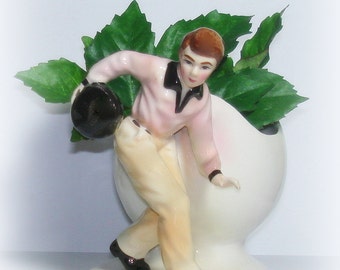 Bowling Planter Vintage From 50's Authentic Bowler's Stance High Gloss Finish Ceramic Replo/Samson Imports