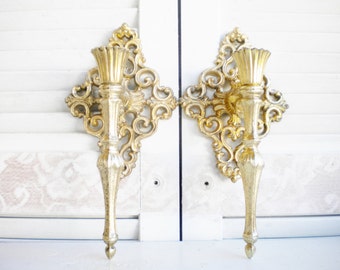 Set Of 2 Vintage Gold Color Wall Sconces Metal Candle Holder Home Decor Gold Hollywood Recency Wedding Vanity Boudoir Giift for Her