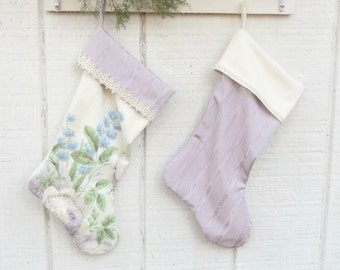 Romantic Cottage Style Christmas Stockings, Made to Order, Heirloom, Choice 1 of 2, Custom Order, Holiday Decor, Wedding, Seasonal, Lined