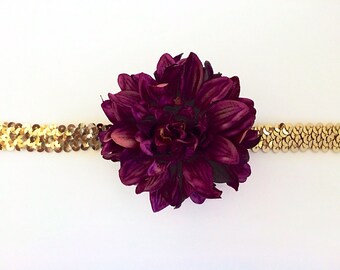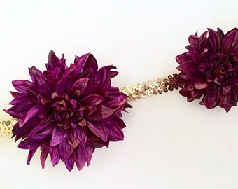 Large Purple and Gold Headband, Big Purple Flower Headband, Gold and Puple headband, Oversized Purple Flower, Mother's Day, Adult Headband