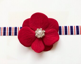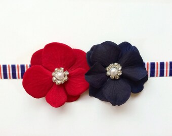 July 4th headband, red white and blue headband, red hydrangea headband, nautical headband, girls headband, patriotic headband, Independence