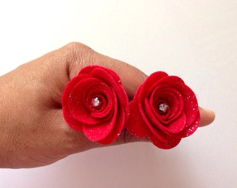 Red Ponytail Holders / Red felt rose ponytail holders. Christmas ponytail holders. Holiday ponytail holders, Red glitter ponytail holders