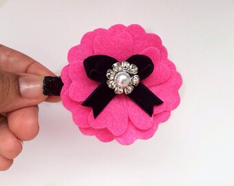 Pink and black Spring Flower hair clip, pink flower hair clip, pink felt hair clip, Meghan and Julie, Easter flower hair Clip