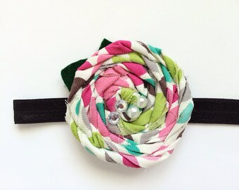 Shabby Chic Hair, Spring Candy Twisted headband, Rosette Headband, Shabby Chic headband, , Meghan and Julie, pink green brown turquoise