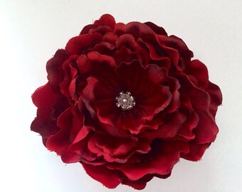 BIG red silk flower hair clip, red flower brooch, Red Silk Flower, Spring Flower, Spring Hair Accessories, Red hair Flower