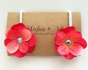 Coral Hydrangea Ponytail Holders, Coral Flowers, hydrangea pigtails, flower ponytail holders, meghan and Julie, Coral hair bows
