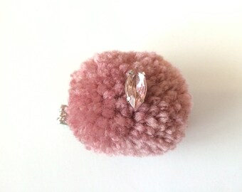 Blush pink Pom Pom Hair Clip, Blush PomPom, Fall Hair Accessories, MAuve pink PomPom, Blush Pink Hair Clip, Girls pom pom clip, PomPoms.