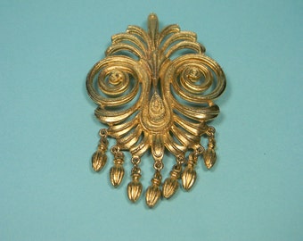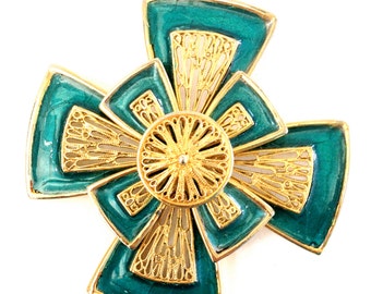 Designer Brooch Pin Vendome Signed Green & Crystal Beads White Enamel Layered 2 1/4" Vintage