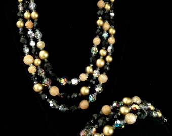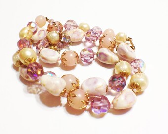 Vintage Vendome Beaded Necklace, Creamy Pink and AB Beads, Art Glass, Lucite,1960s